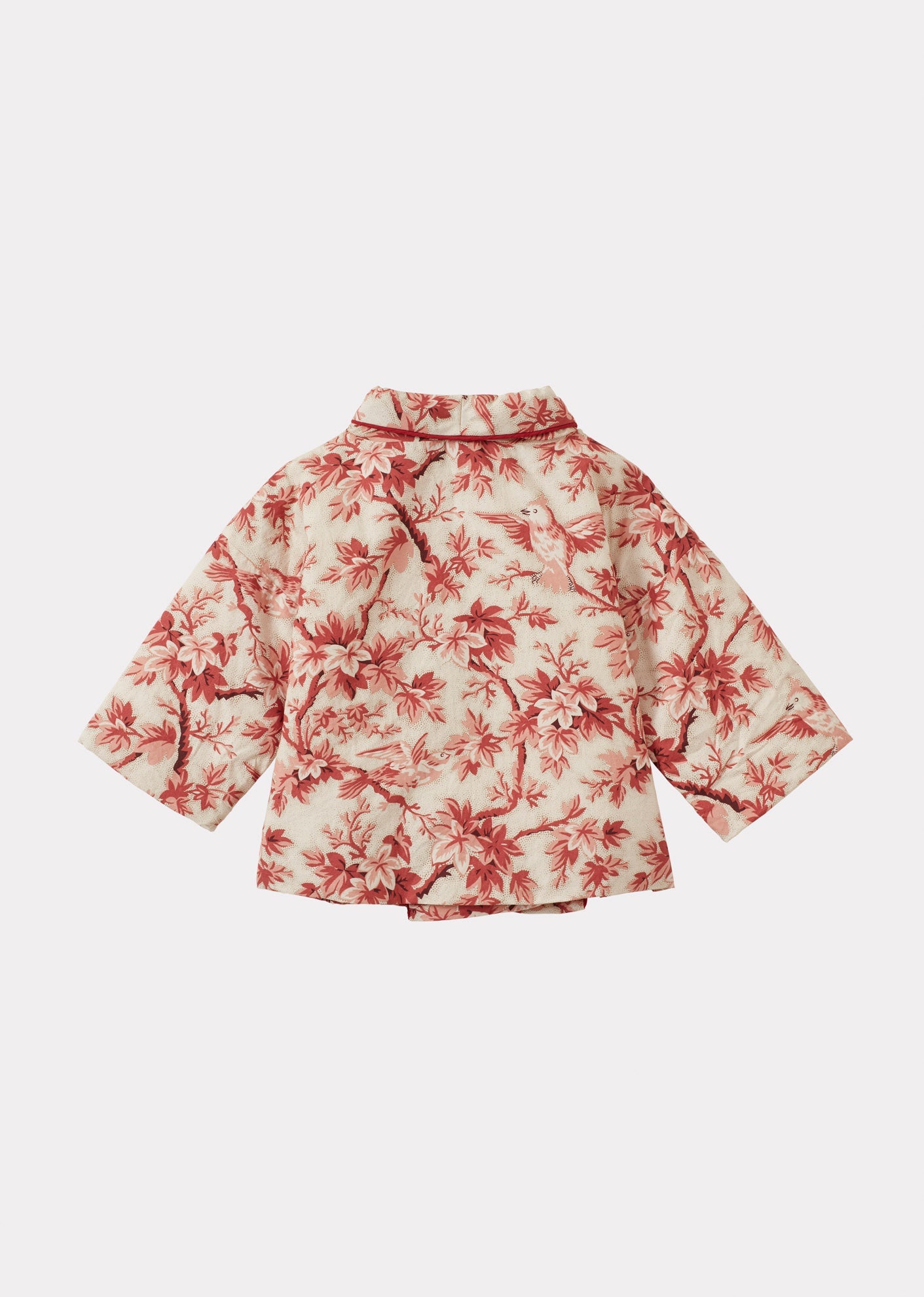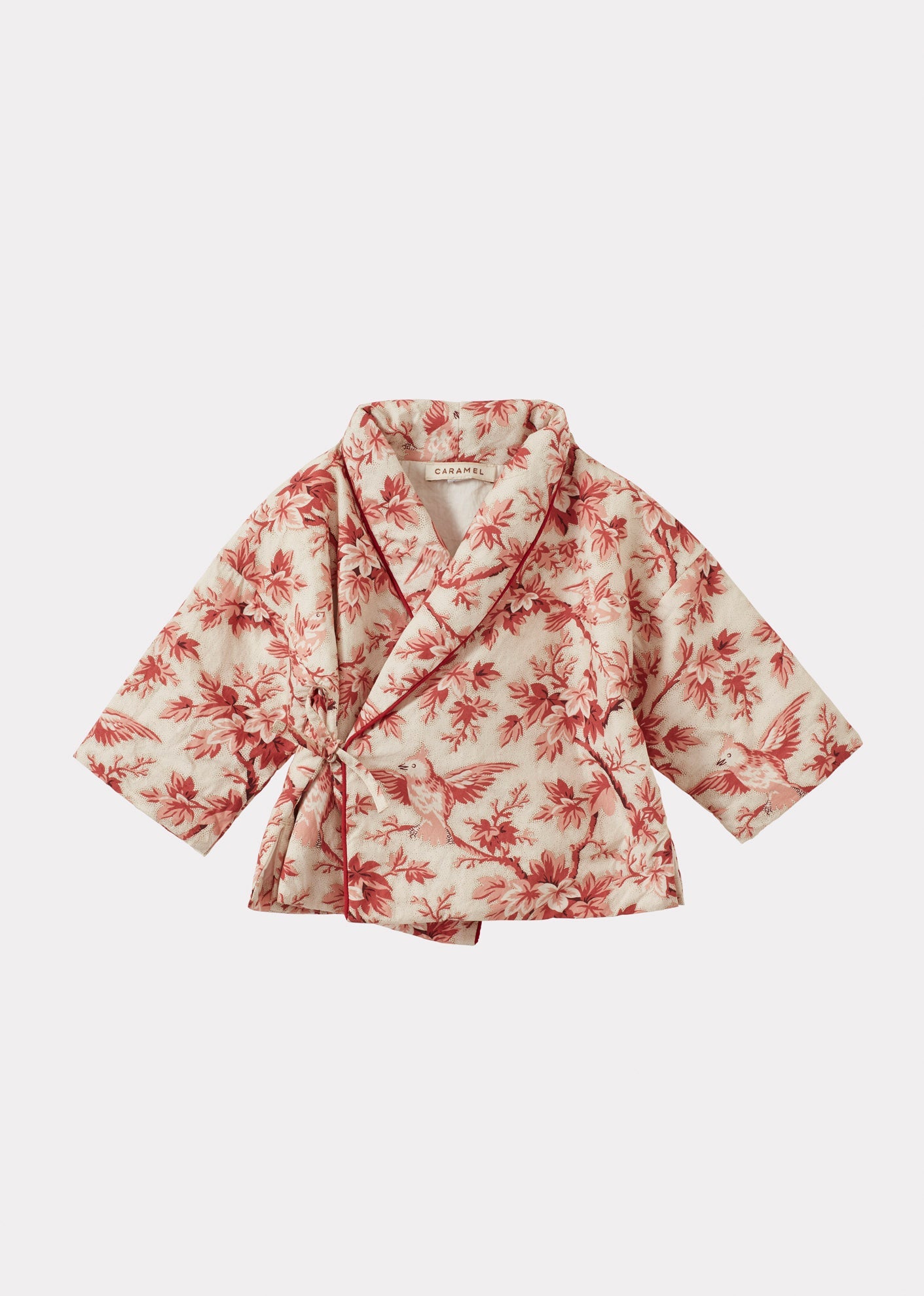 The Cassius baby set is truly a special piece. Crafted from, crisp, pure cotton, the jacket, trousers, and bonnet feature Caramel signature Tree Tops print, designed in our London studio. The kimono-style wrap jacket boasts a shawl collar and is secured with charming ties, offering plenty of room for growth and wiggles. Our signature Ficus trousers are fully lined in soft jersey cozy and comfortable against the skin. The bonnet adds a playful and super-sweet touch. A perfect newborn gift to love, wear, pass-down.Comes beautifully gift-wrapped.