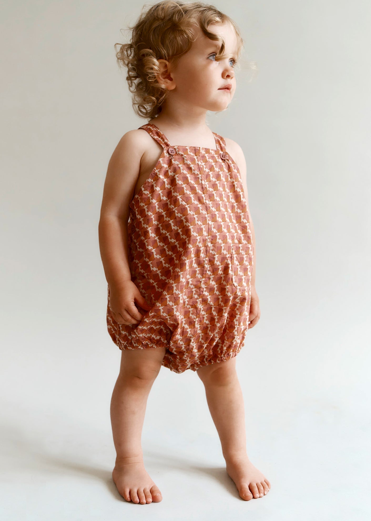 FLURY BABY COTTON POPLIN ROMPER - MAUVE GEO PRINT