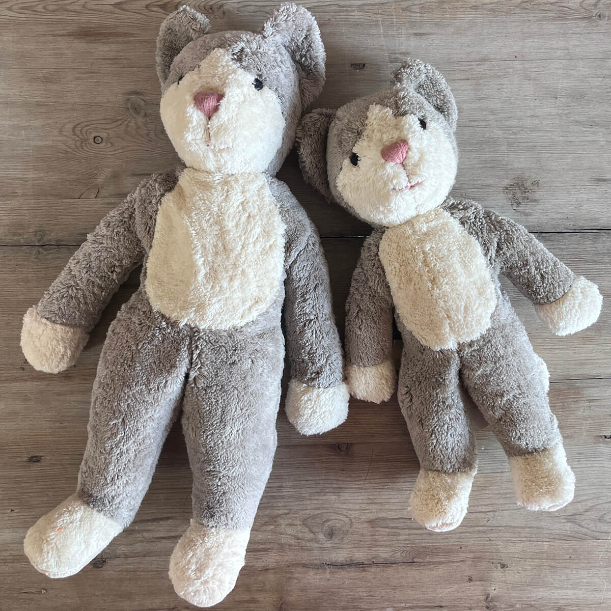 Large cat floppy animal by Senger Naturwelt. Gorgeous cat soft toy made of ecological organic cotton plush and sheep‘s wool making them both super soft, and also safe if put in the mouth. An heirloom quality soft toy hand made in Germany with the highest attention to craftsmanship, entirely from natural materials. Made from Organic Cotton and Sheep's Wool. 40cm tall approx. 27cm x 11cm x 40cm. Product code Y21715.
