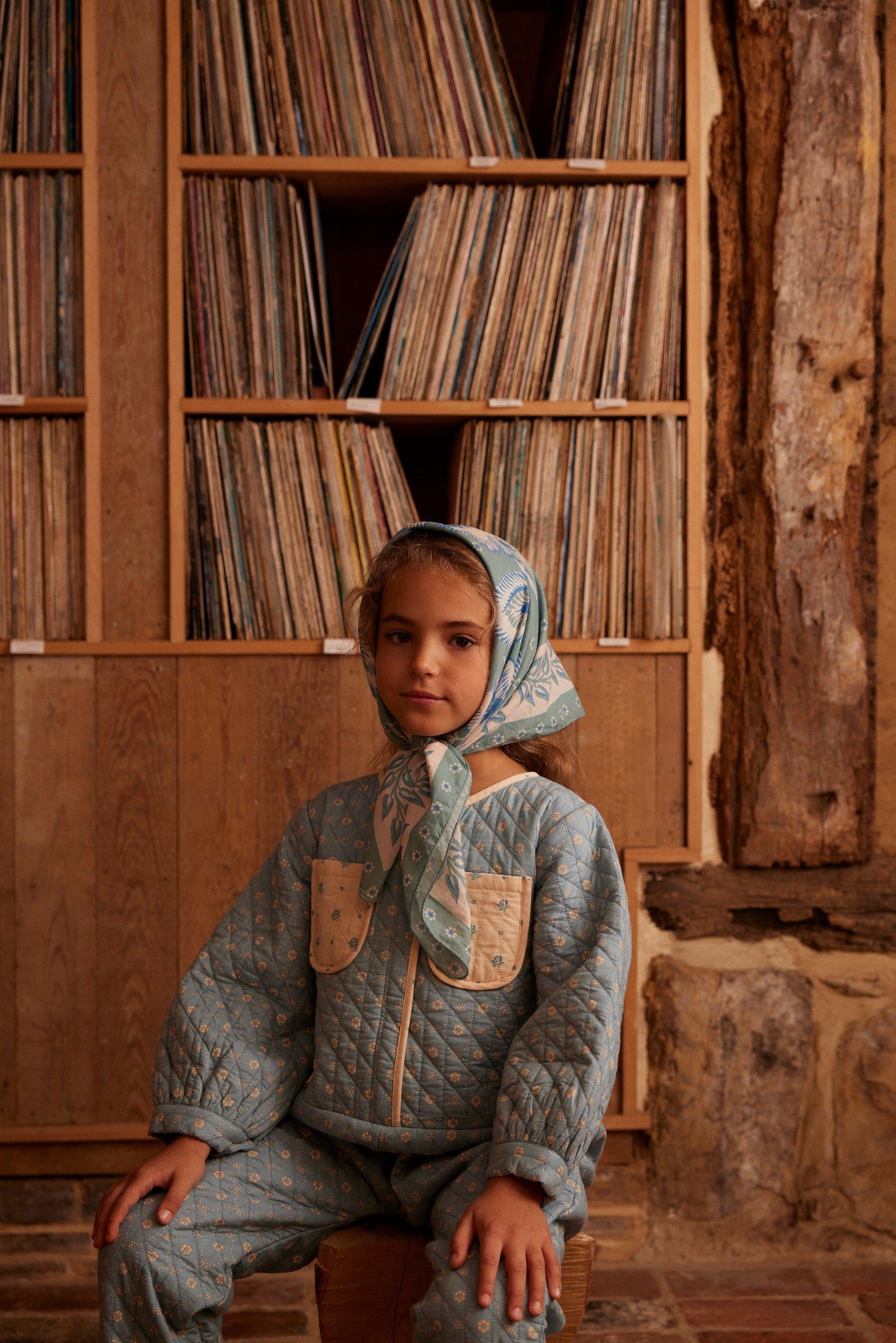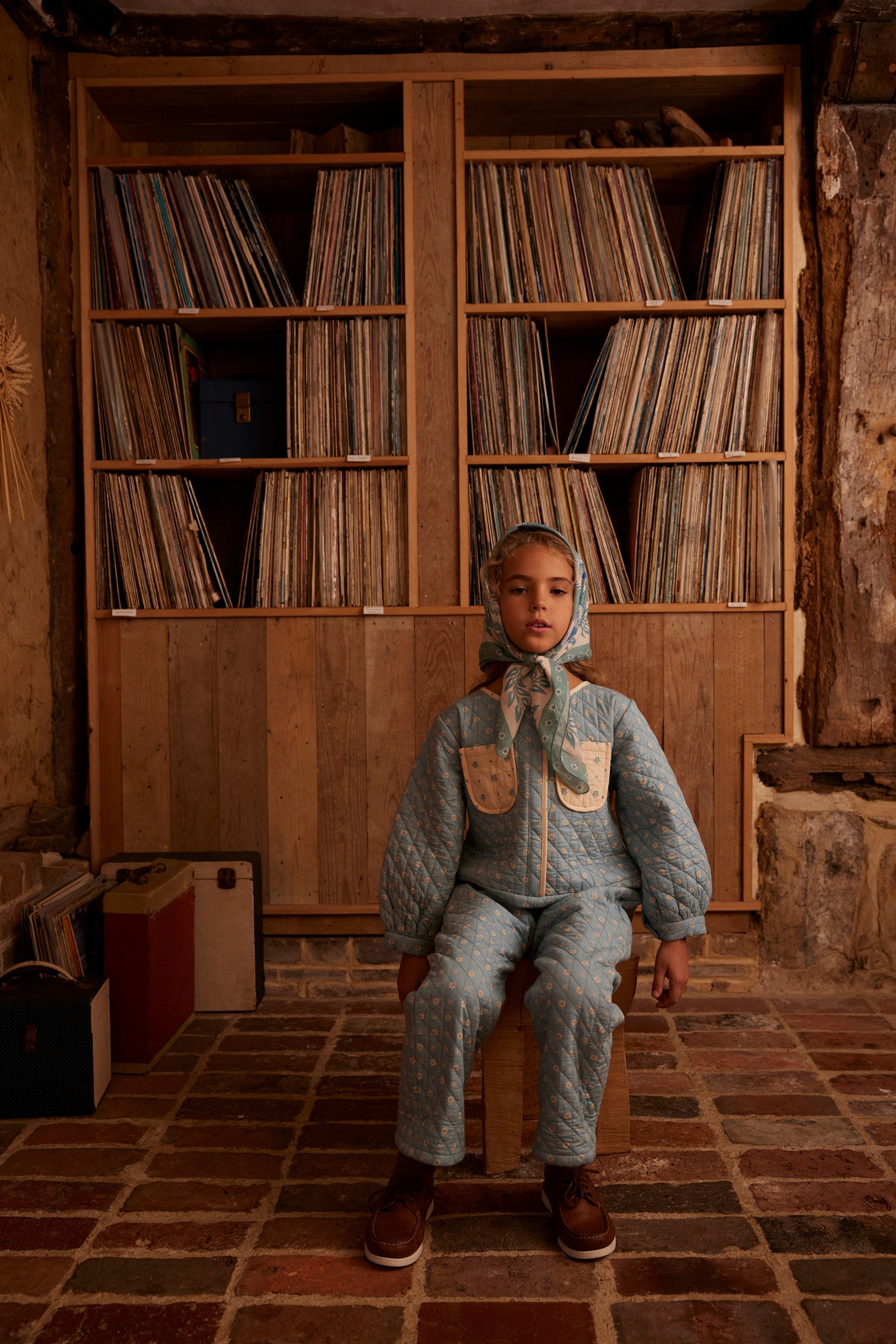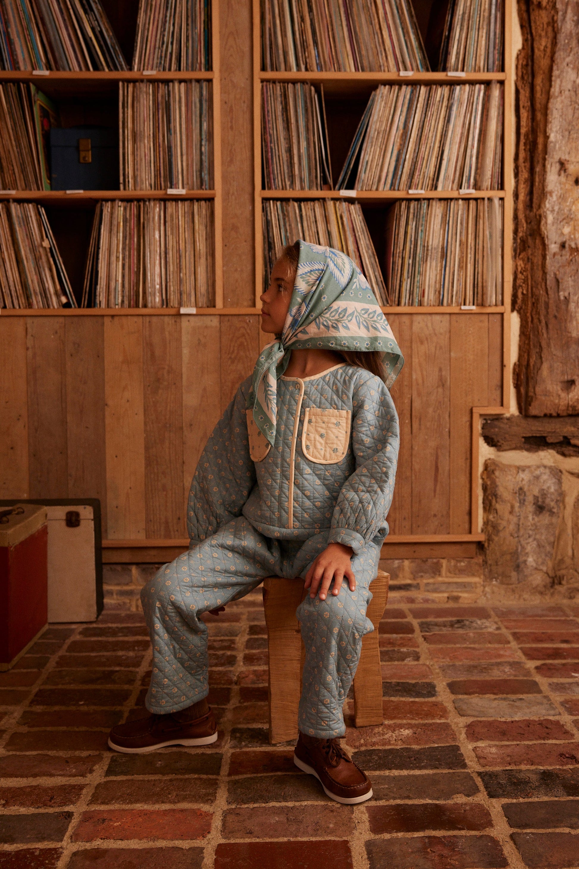 Our favourite Marissa jumpsuit returns in the season’s ‘quilt calico’. Lightly quilted with a cotton voile lining, Marissa is so cosy layered over jersey or knits. With contrast patch pockets for nature’s treasures, gathered sleeves with button cuffs, and concealed front zip for ease of dressing, she is a practical piece for seasonal adventures. Legs can be easily rolled up or down to extend wear time. Outer - 100% Cotton (Poplin) Lining- 100% Cotton (Voile) Ethically made in India Hand wash recommended 2-3 years. Overall length is 81cm 3-5 years. Overall length is 90cm 5-7 years. Overall length 100cm 7-9 years. Overall length is 113cm 9-11 years. Overall length is 126cm * Bella in the studio shoot imagery is 125cm tall and wearing a 5-7y sample