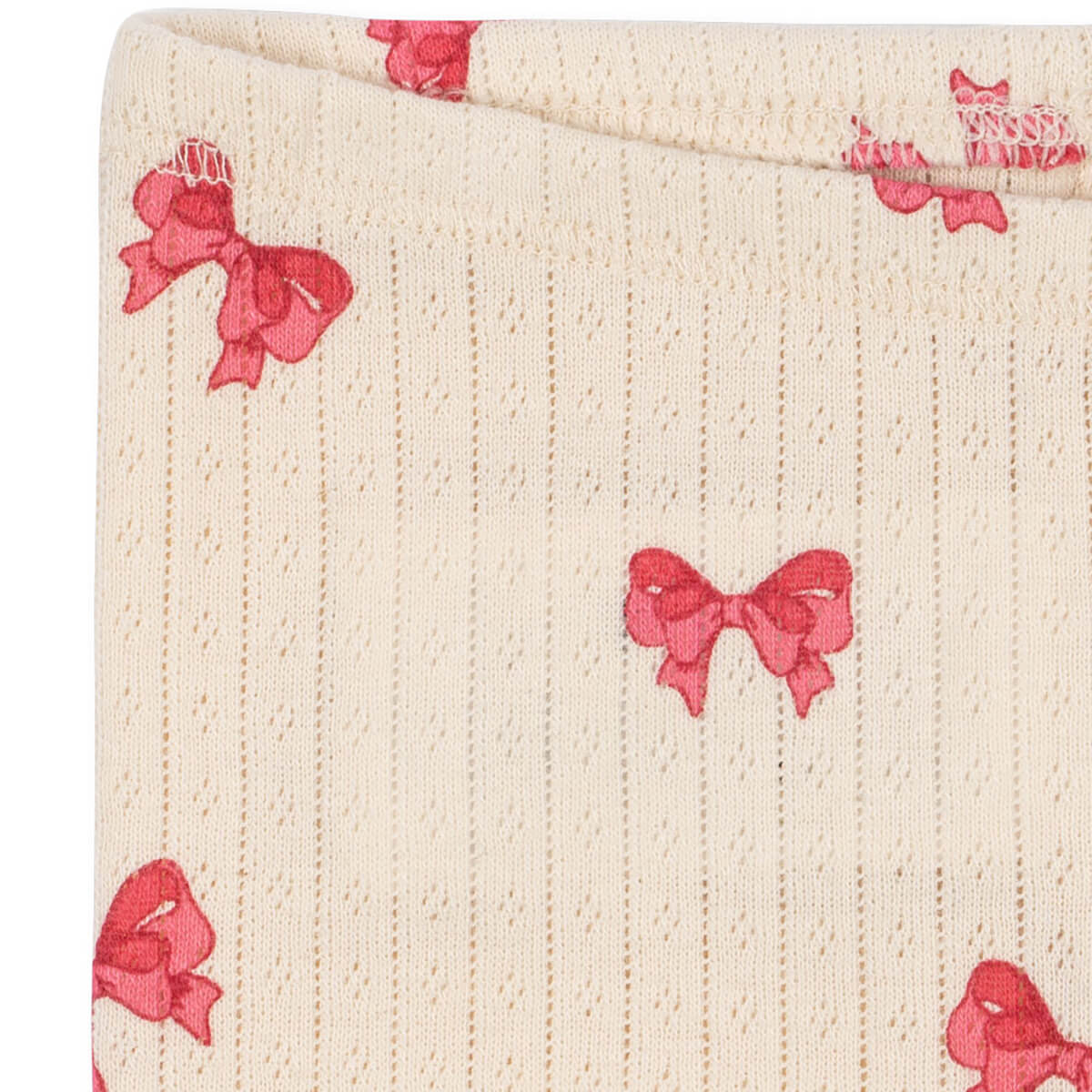 Minnie Legging Pants by Konges Sløjd. Soft cotton leggings with decorative pointelle. These essentials are made to be worn both day and night as a comfortable layer close to the skin, and is designed with a decorative all-over pointelle pattern and a comfy elastic waistline. Colour - Rosia Bow. 100% Organic Cotton. Product Code KS103395