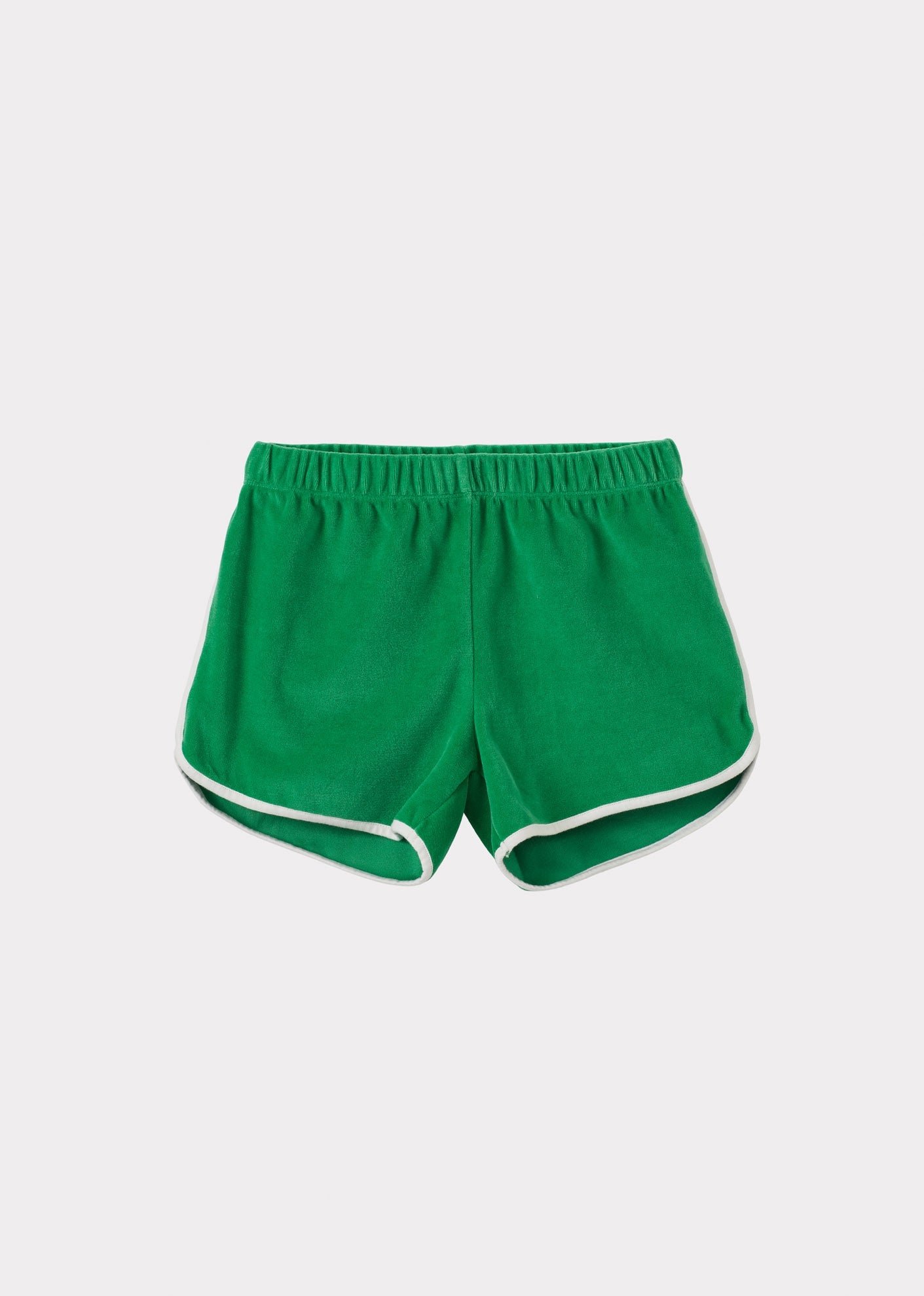 Our Sonny Shorts are inspired by retro sportswear, boasting a vibrant green hue with a contrasting white lining. Crafted from soft, quick-drying cotton towelling, they offer all-day comfort thanks to a relaxed fit, an elasticated waistband, and a practical back pocket. Perfect as a beach cover-up, these shorts are designed for easy movement, whether splashing, exploring, or lounging by the shore. Pair them with our Albie Top.