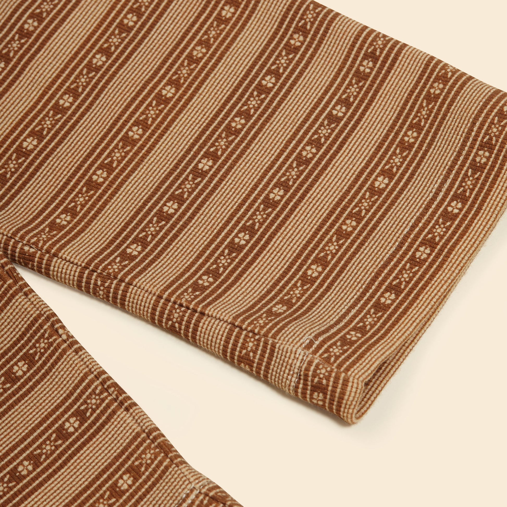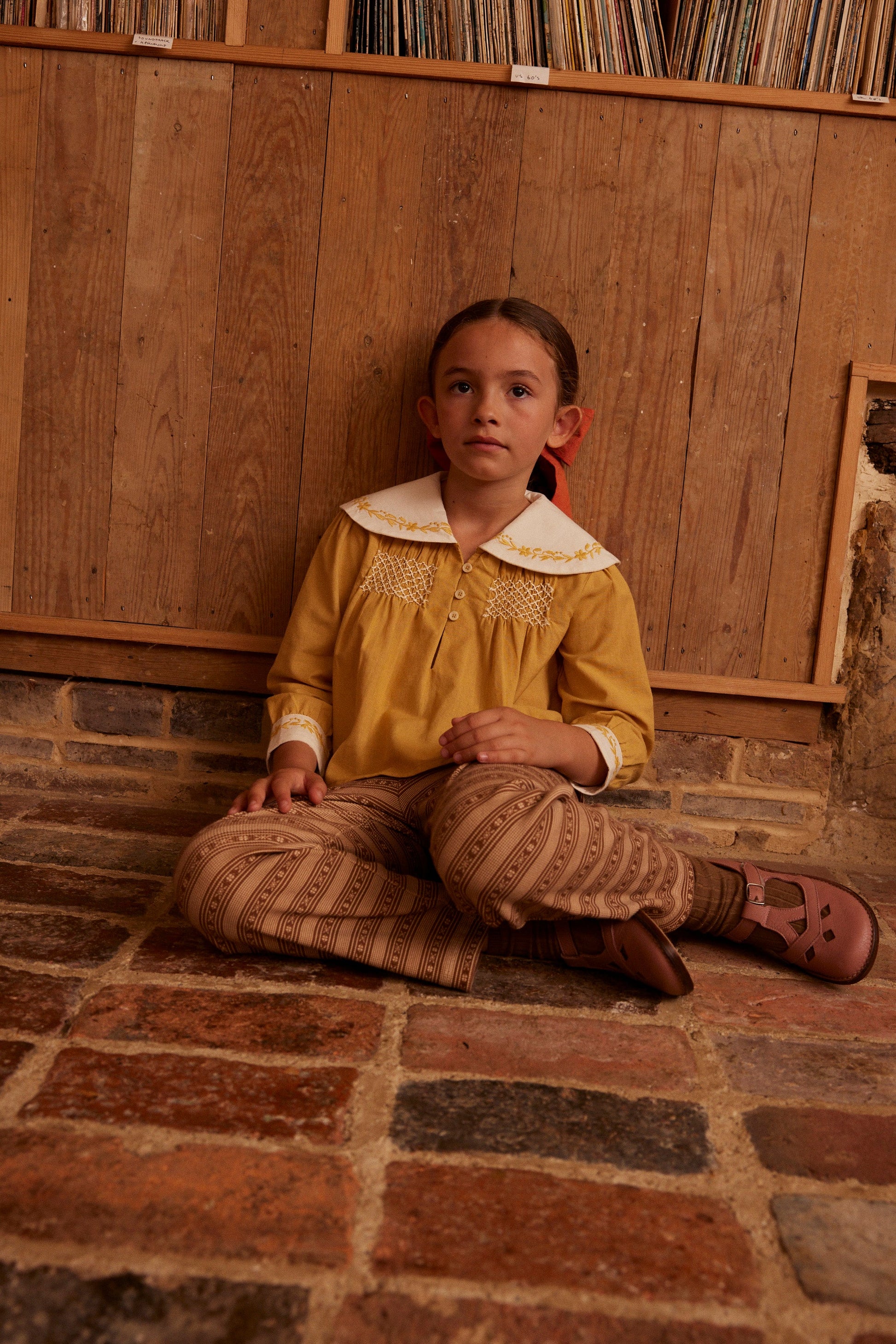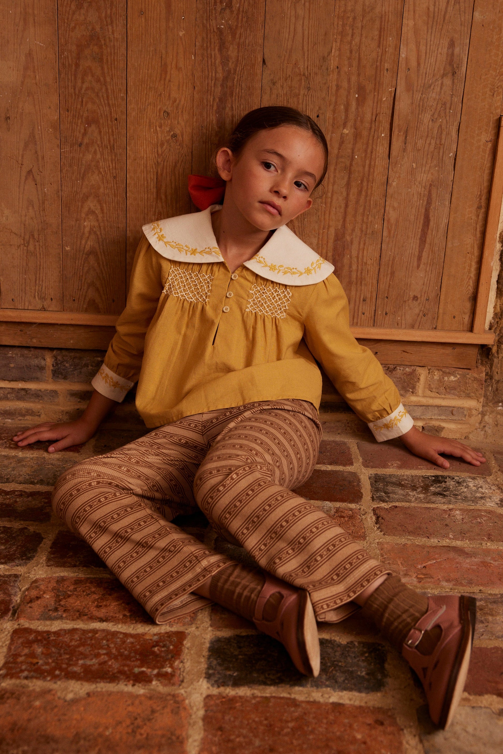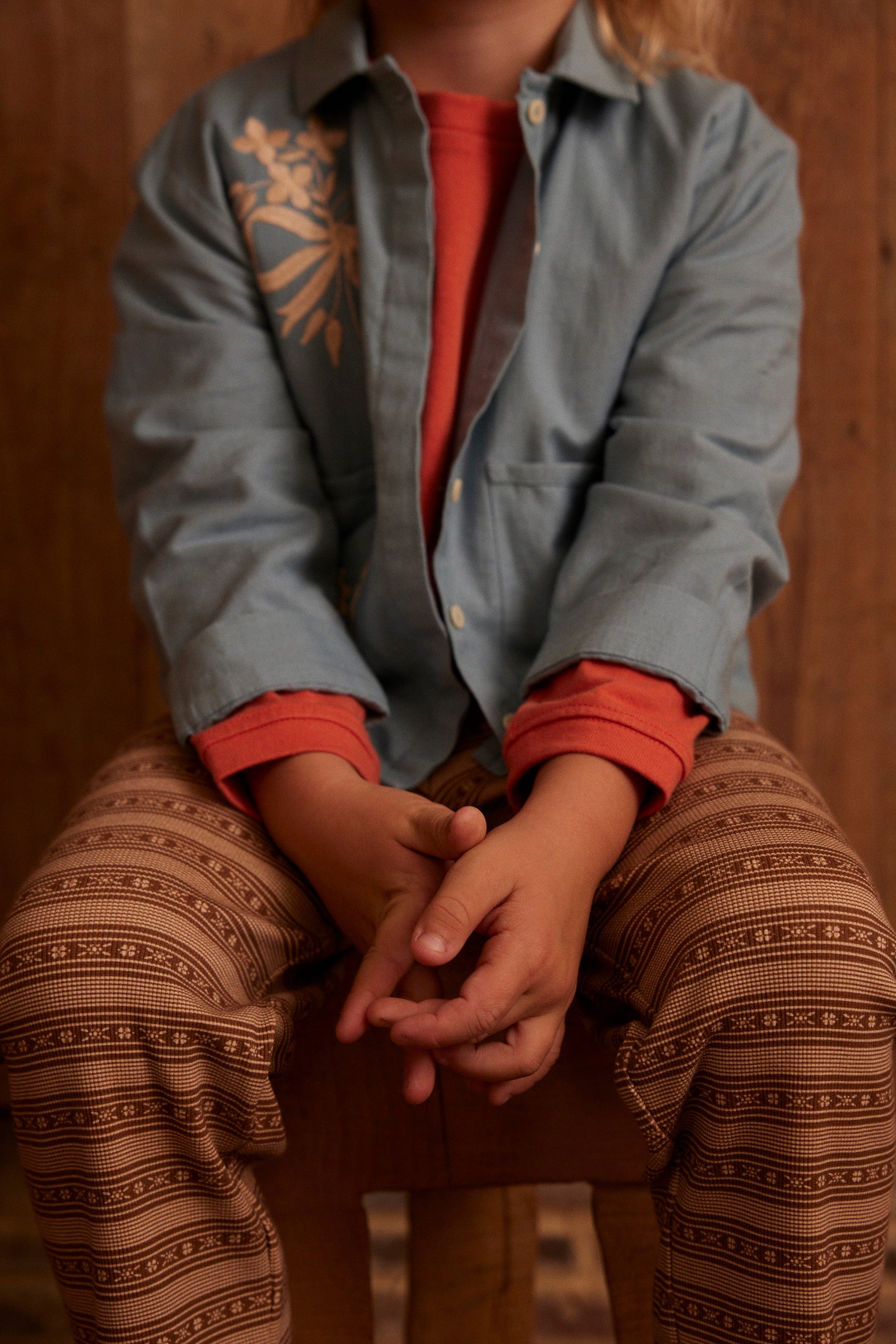 Lana is a sweet everyday straight legging in our ribbed ‘Kanna stripe’ cotton jersey. This layering staple looks sweet worn under dresses, styled with our blouses for an easy everyday look, or mixed and matched with our jersey tops. 100% Cotton (Mid-weight Ribbed Jersey) Ethically made in India Hand wash recommended 2-3 years. Trouser inseam 35cm. Waist measures 25cm relaxed elastic. 3-5 years. Trouser inseam 39cm. Waist measures 26cm relaxed elastic. 5-7 years. Trouser inseam 46cm. Waist measures 28cm relaxed elastic. 7-9 years. Trouser inseam 53cm. Waist measures 30cm relaxed elastic. 9-11 years. Trouser inseam 60cm. Waist measures 33cm relaxed elastic. * Arianah in the studio shoot imagery is 126cm tall and wearing a 5-7y sample * Bella in the studio shoot imagery is 125cm tall and wearing a 5-7y sample * Marla in the studio shoot imagery is 123cm tall and wearing a 5-7y sample * Ava in the studio shoot imagery is 124cm tall and wearing a 5-7y sample * Frank in the studio shoot imagery is 118cm tall and wearing a 5-7y sample